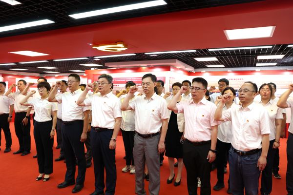 兩次參觀結(jié)束前,與會黨員面對黨旗,高擎右拳、莊嚴宣誓,堅定有力的誓言讓在場的每一位同志接受了一次深刻的黨性教育和靈魂洗禮。